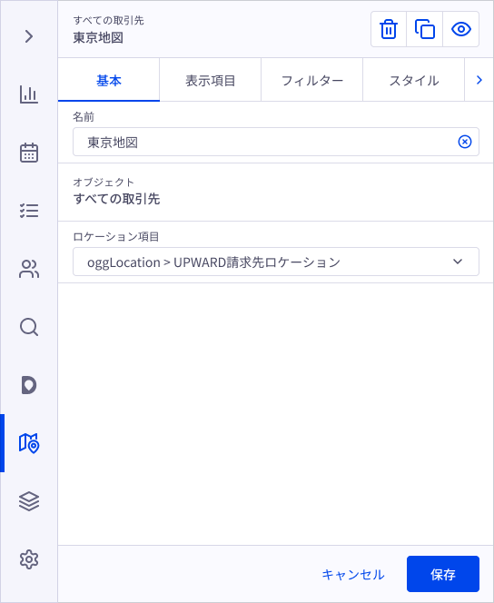 • [所有する{オブジェクト名}]:利用ユーザーが[所有者]に設定されているレコードを地図上に表示します。