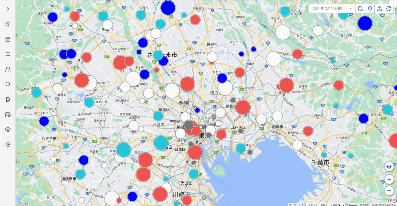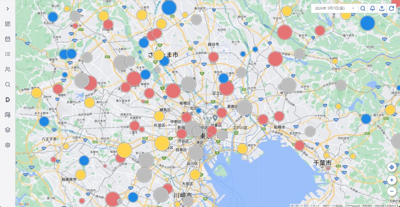 重要顧客との定期的なコミュニケーションの有無を可視化する地図です。