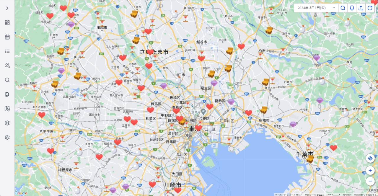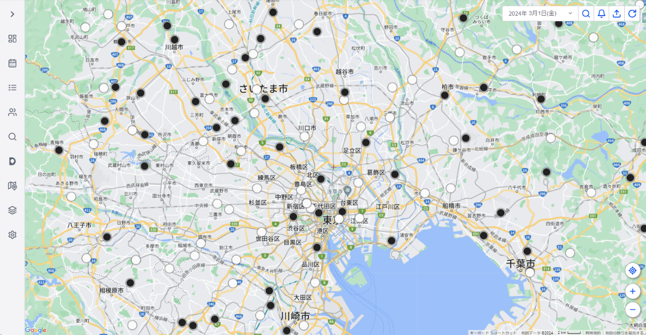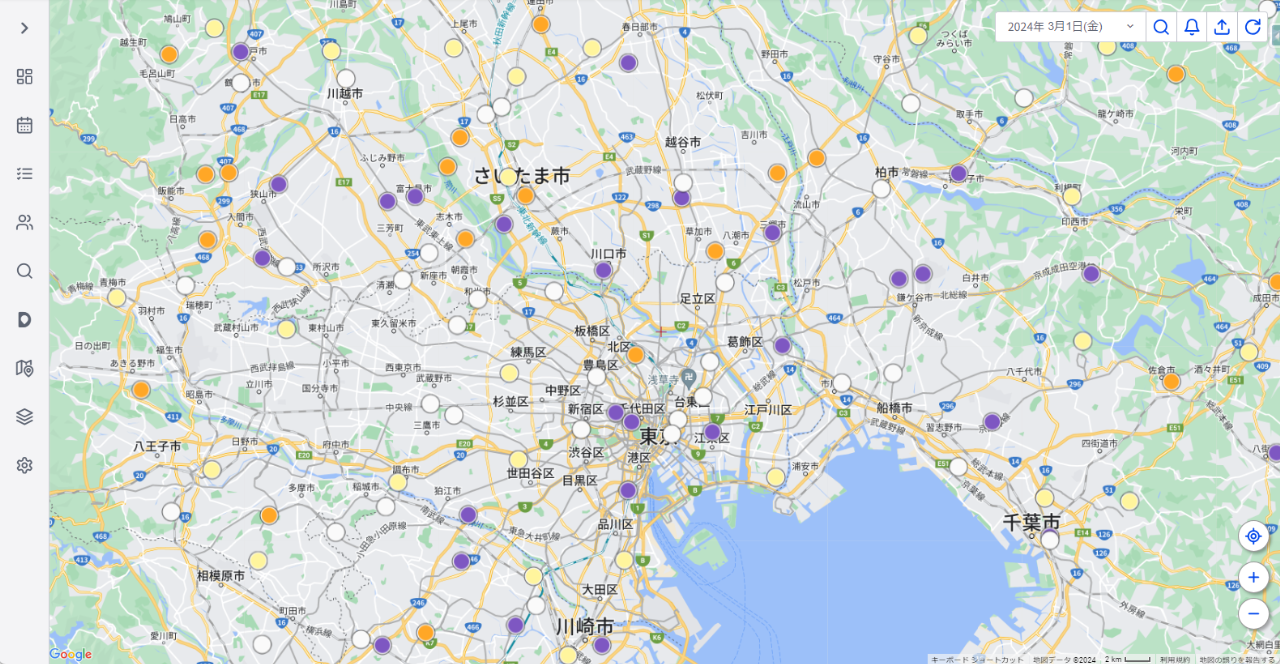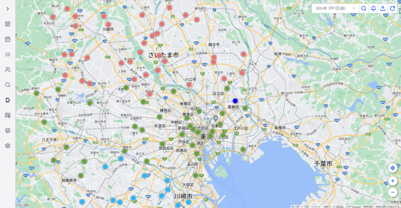 [フィルター]で、拠点ごとに表示するマーカーを絞り込むことも可能です。