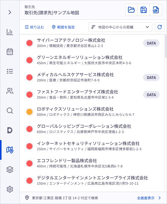 | 範囲を指定 | 地図に表示するマーカーを、範囲を指定して絞り込みます。 | |