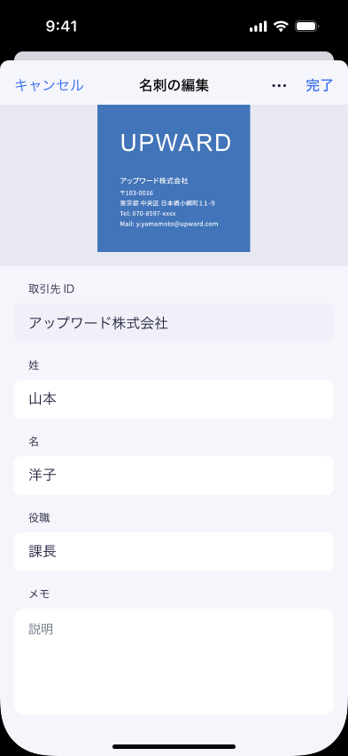 [UPWARD AI Scan for Business Card]の[名刺の編集]について説明します。