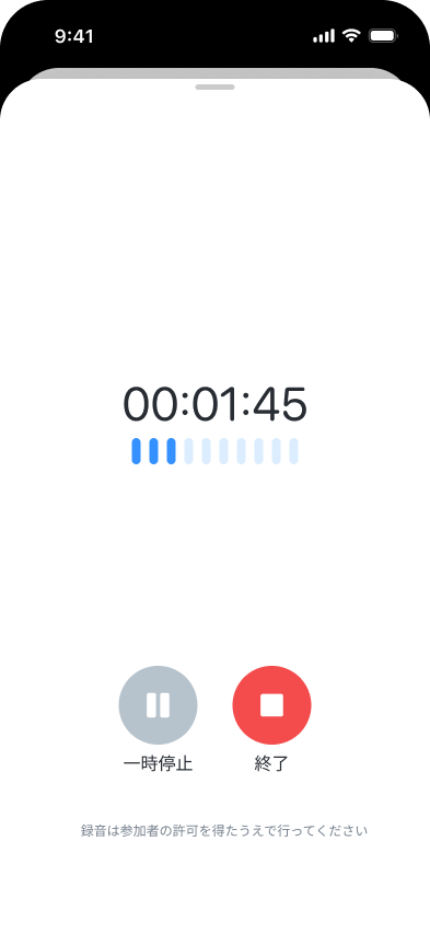なお、[録音]画面はスワイプダウンして閉じることができます。