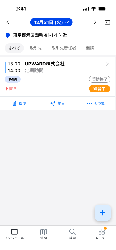 [UPWARD AI Speech]の[スケジュール:]画面について説明します。